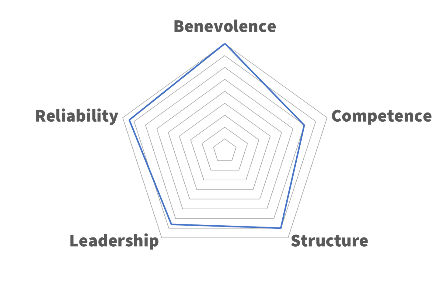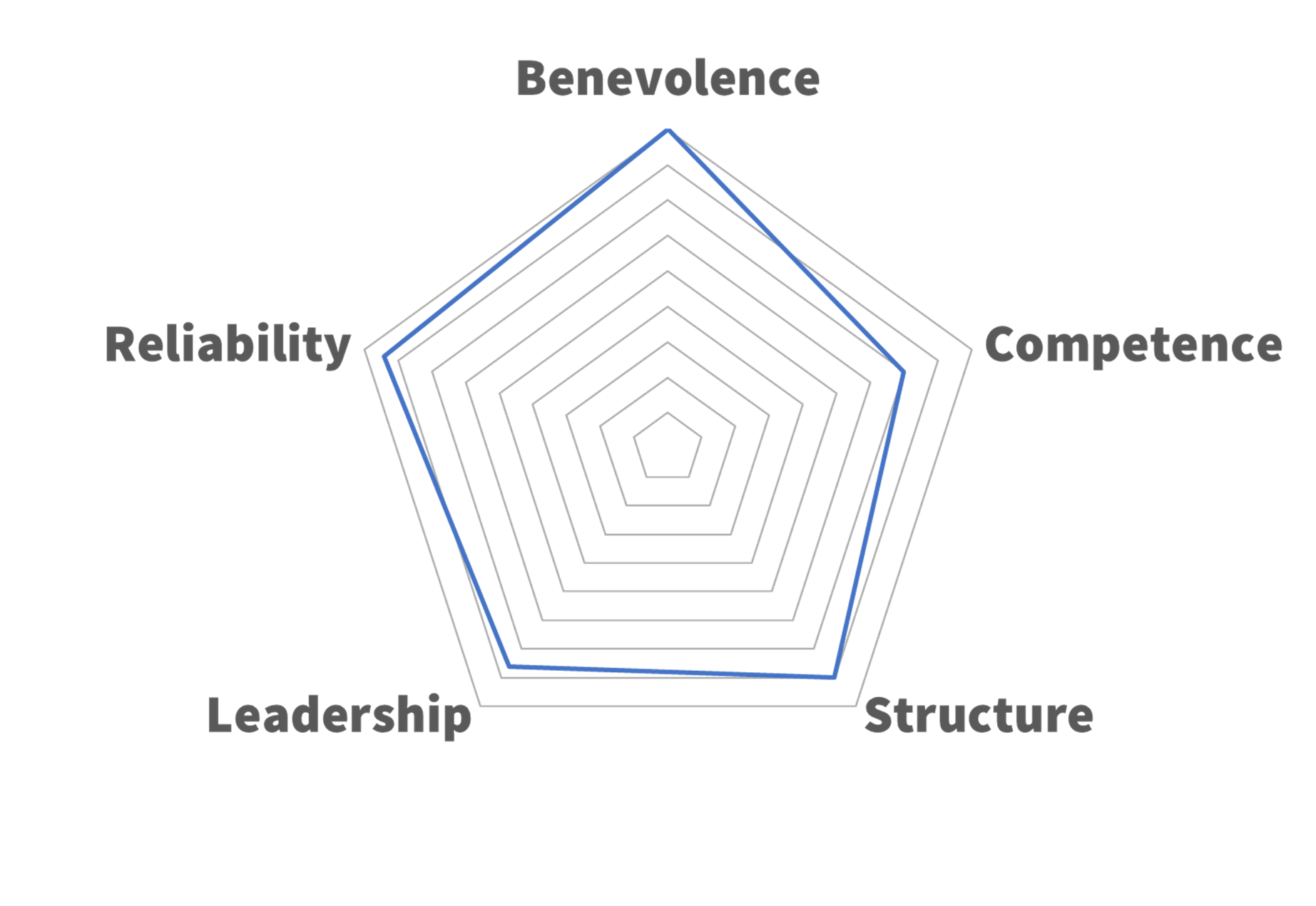 Put together, the resulting five dimensions create a measurement tool that can be used to assess and visually represent how trustworthy a particular person, group, or organisation is assessed to be: